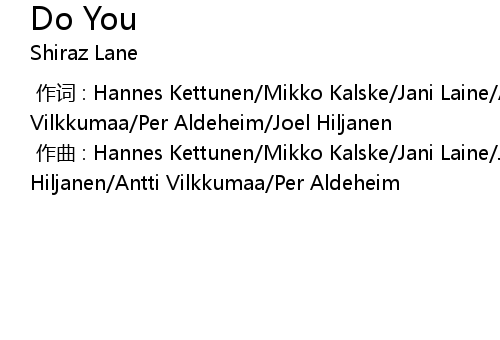 | [00:00.00-1] | zuò cí : Hannes Kettunen Mikko Kalske Jani Laine Antti Vilkkumaa Per Aldeheim Joel Hiljanen |