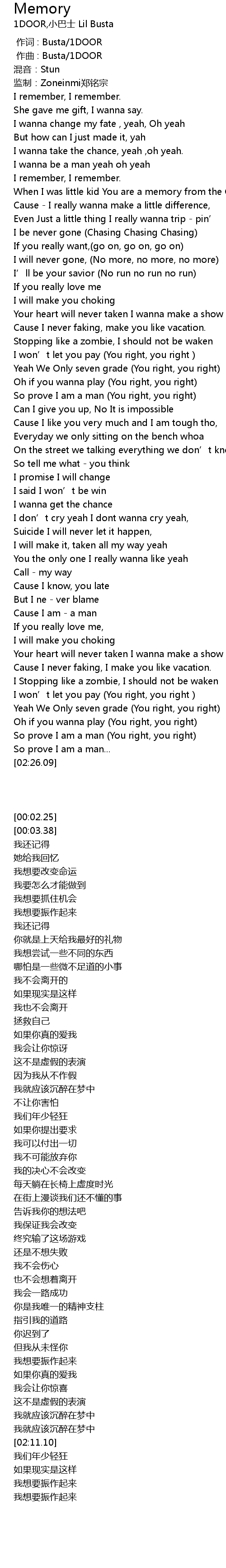 | [00:01.00] | zuò qǔ : Busta 1DOOR |