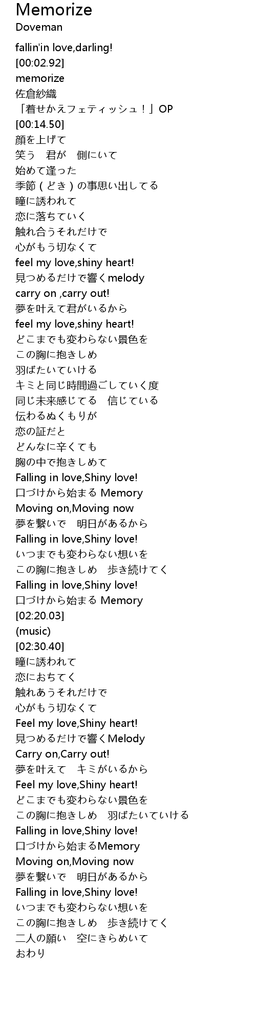| [03:02.74] | Feel my love, Shiny heart! |