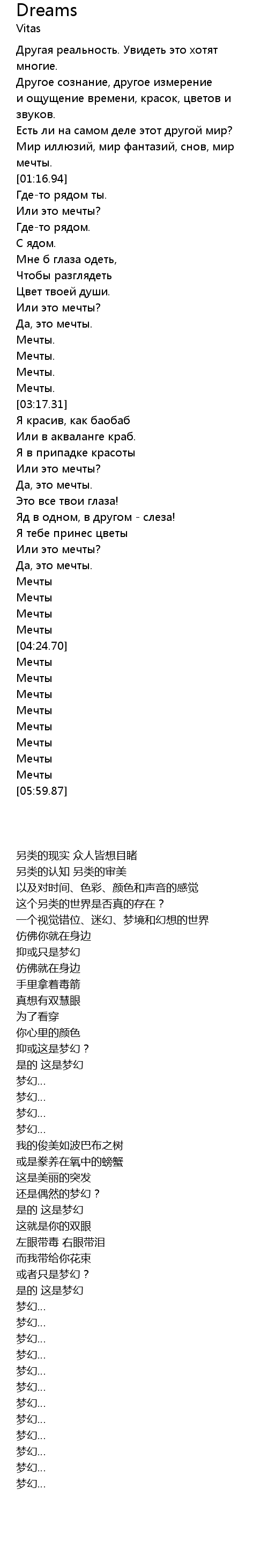 | [05:54.57] | Мечты |
