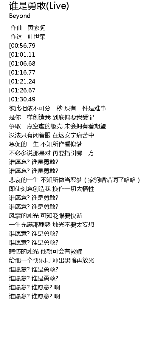| [04:44.00] | 谁愿意? 谁是勇敢? |