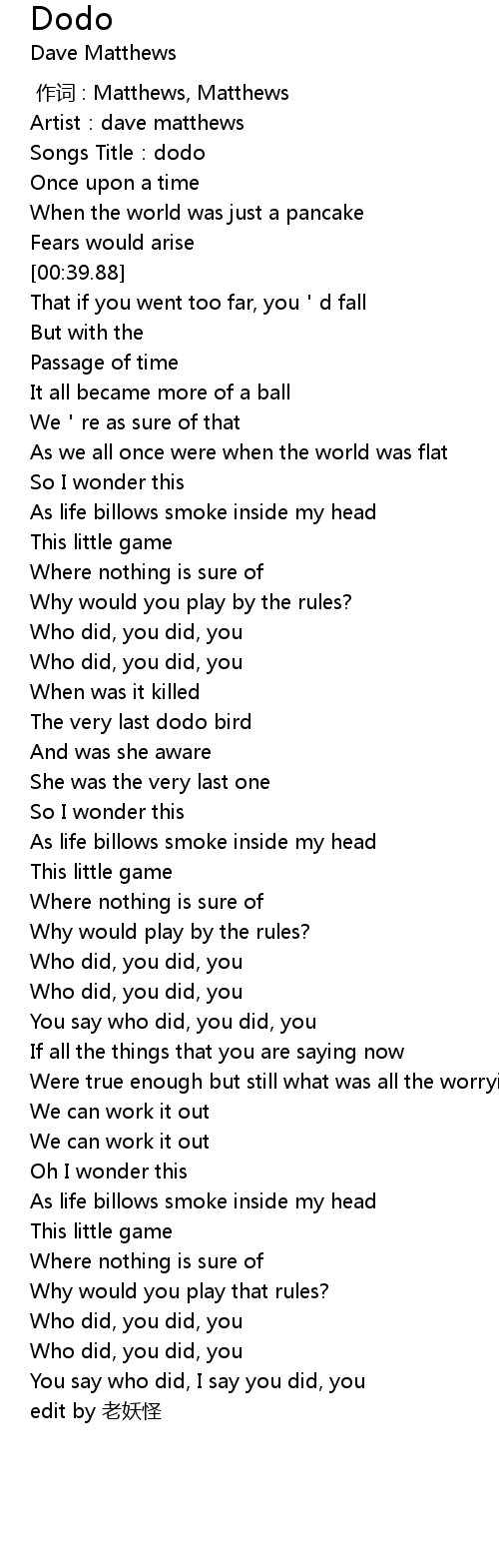 | [00:23.04] | Artist: dave matthews |