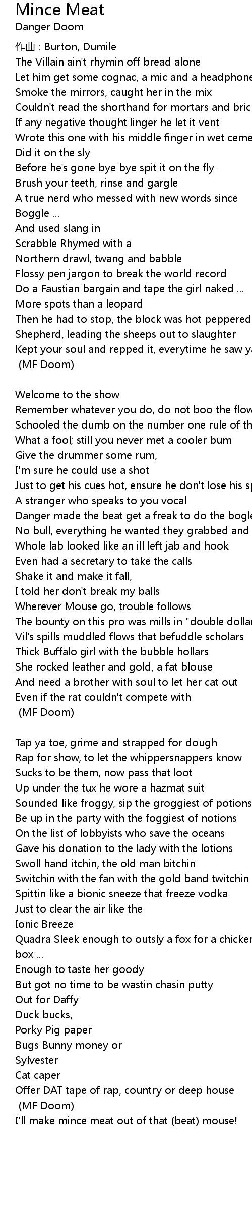 | I' ll make mince meat out of that beat mouse! MF Doom | |