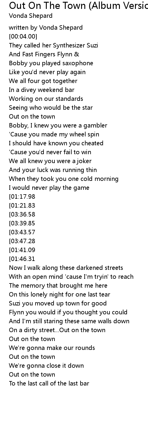 [04:02.29][03:47.28][02:22.80][01:36.79] Out on the town