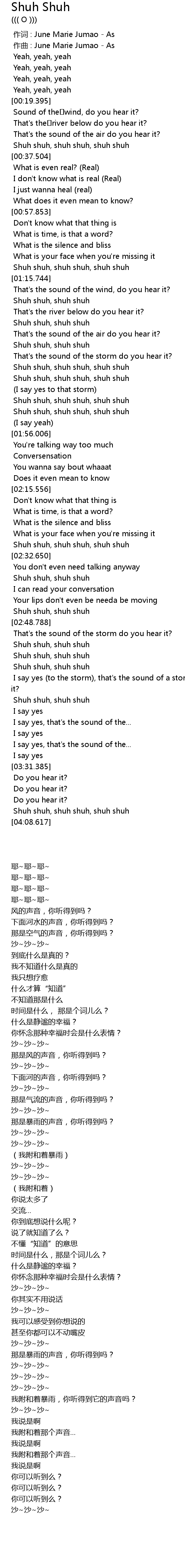 | [00:33.449] | Shuh shuh, shuh shuh, shuh shuh |