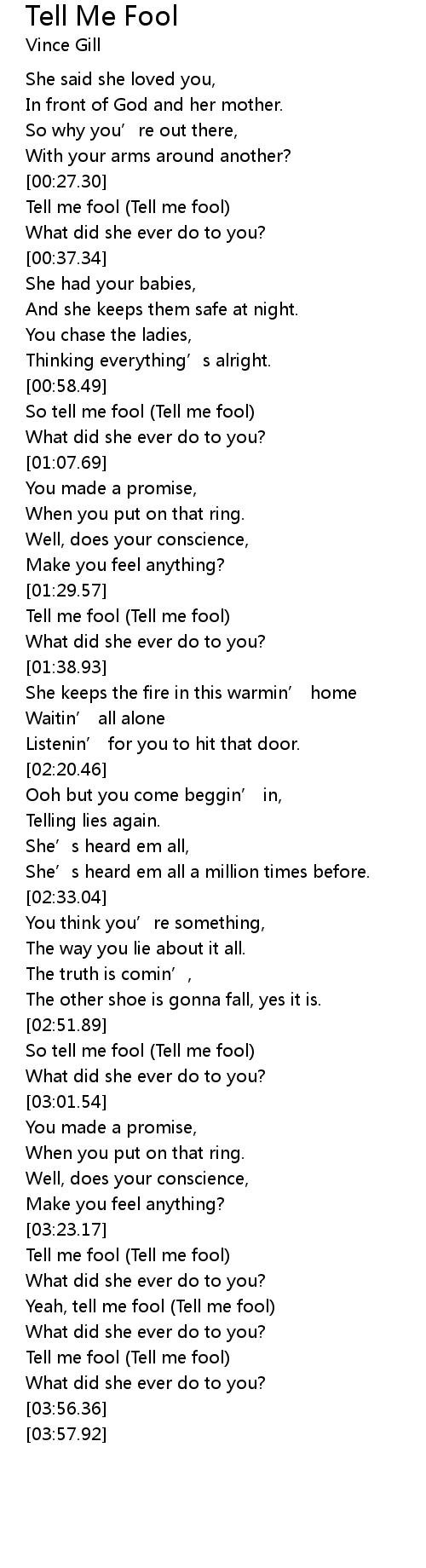 | [00:29.73] | Tell me fool Tell me fool |
