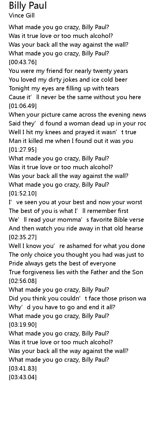 | [02:57.80] | What made you go crazy, Billy Paul? |