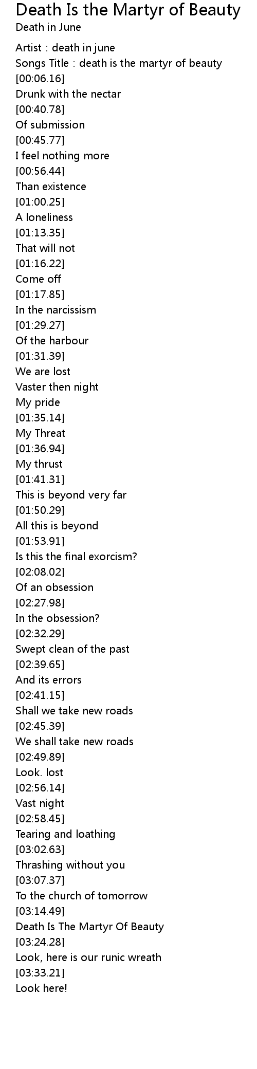 | [03:18.92] | Death Is The Martyr Of Beauty |