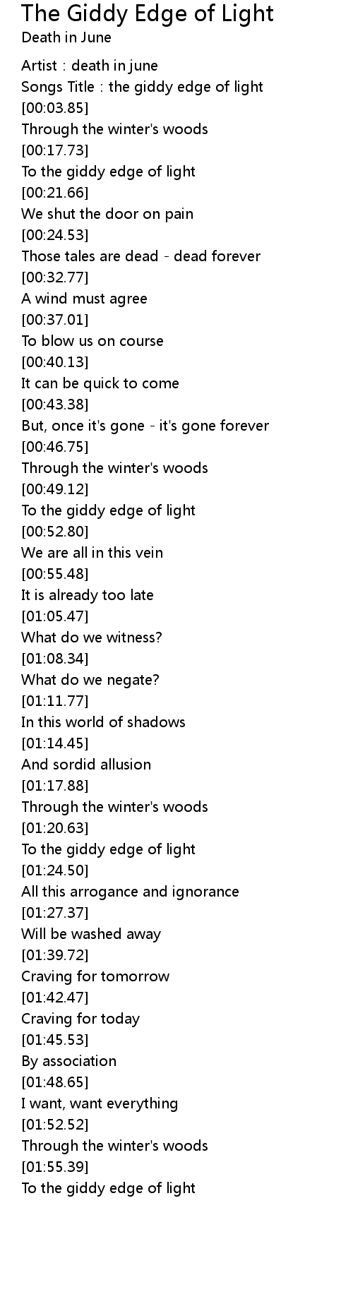 | [01:22.19] | To the giddy edge of light |