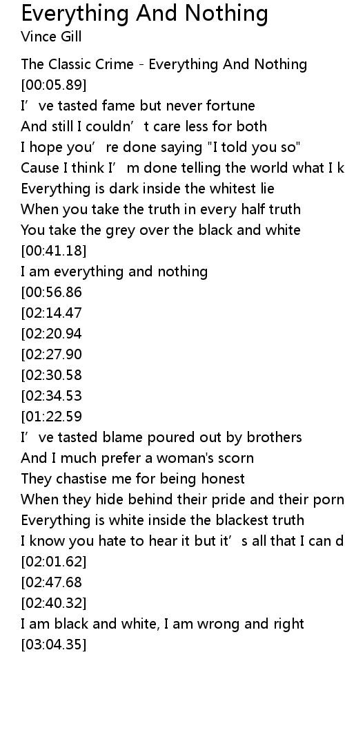 | [00:01.12] | The Classic Crime Everything And Nothing |