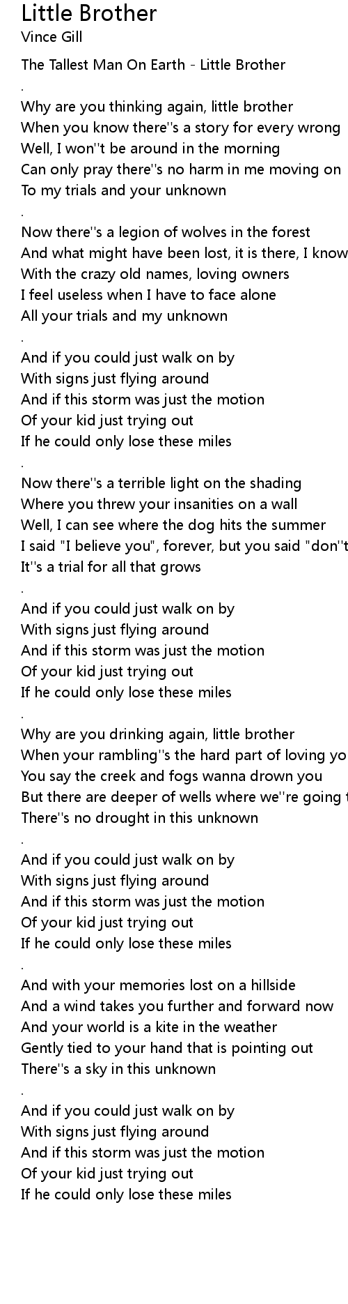 The Tallest Man On Earth - Little Brother |