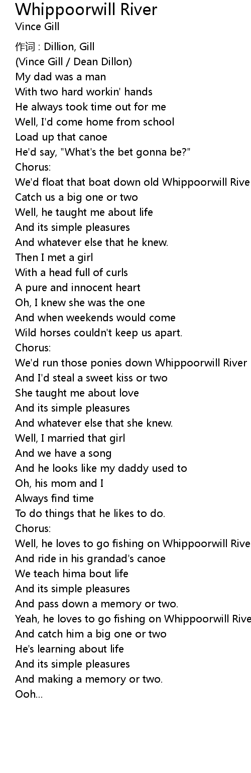 | Yeah, he loves to go fishing on Whippoorwill River | |