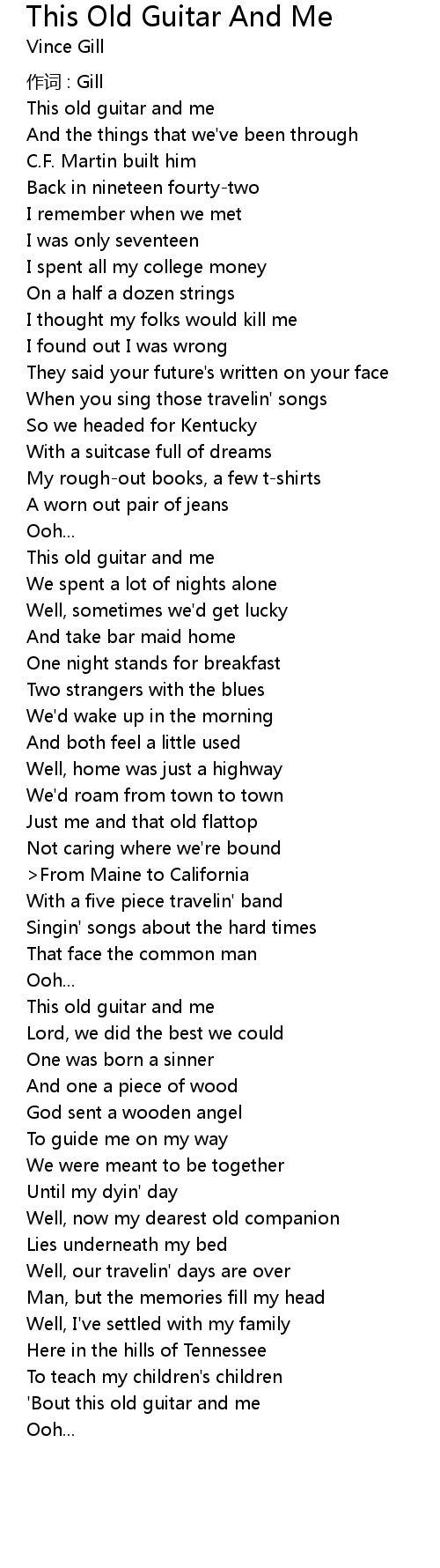 | ' Bout this old guitar and me | |