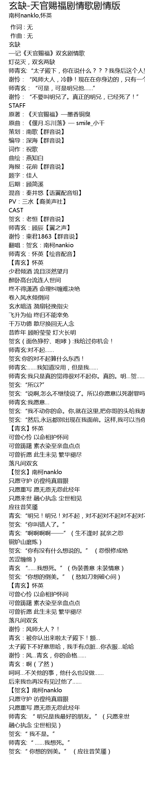 | [00:04.917] | —记《天官赐福》双玄剧情歌 |