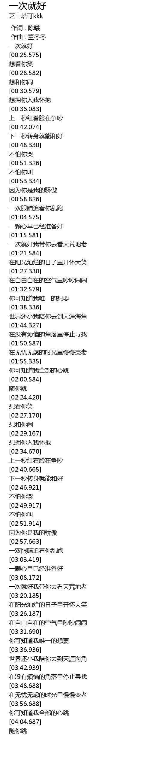 | [00:00.000] | 一次就好 |