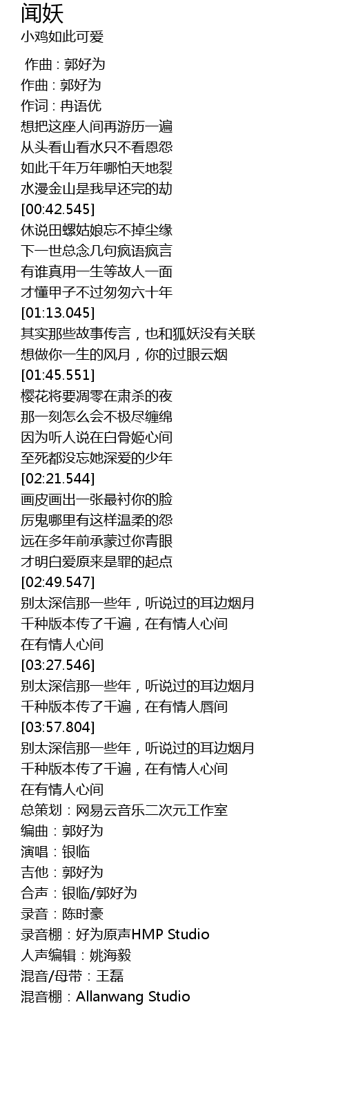 | [04:35.304] | 合声:银临/郭好为 |