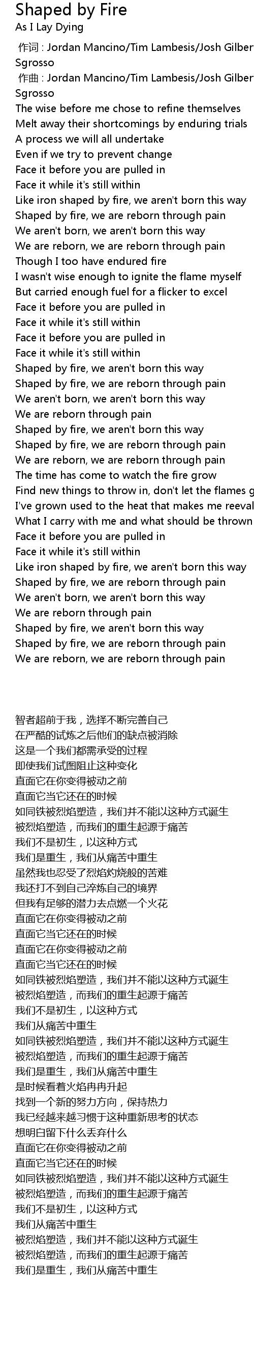 | [01:55.89] | Shaped by fire, we aren't born this way |