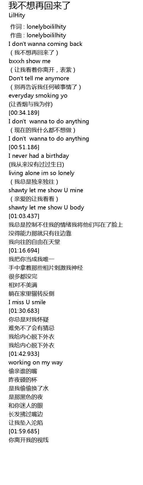 | [00:01.000] | zuo qu : lonelyboililhity |