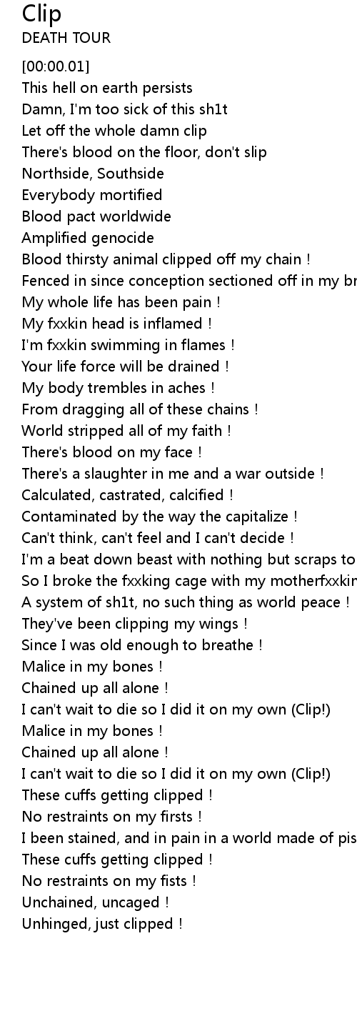 | [01:55.18] | I can' t wait to die so I did it on my own Clip! |