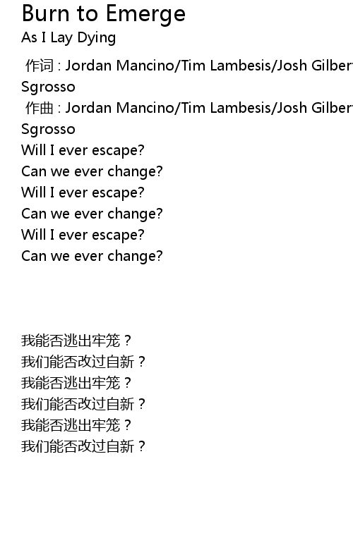 | [00:00.00] | zuò cí : Jordan Mancino Tim Lambesis Josh Gilbert Nick Hipa Phil Sgrosso |