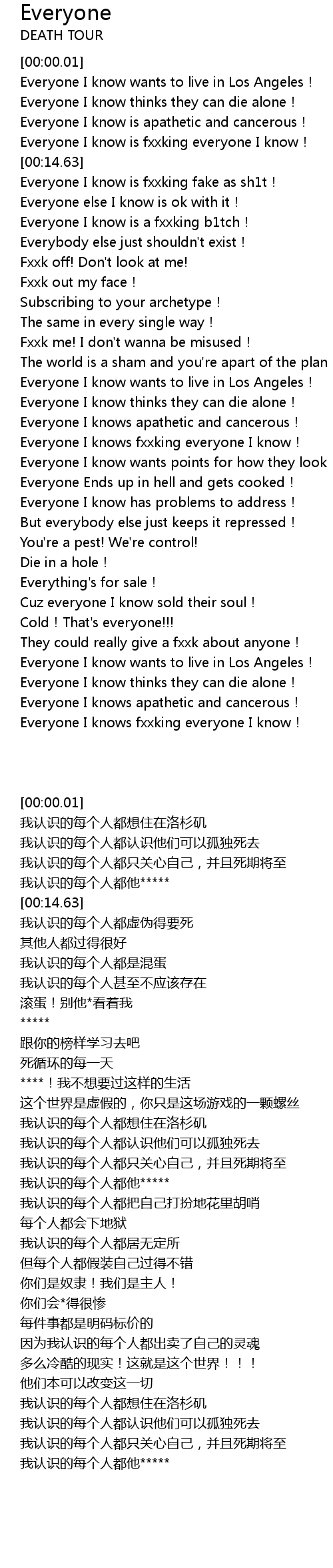 | [00:51.19] | Everyone I knows fxxking everyone I know! |