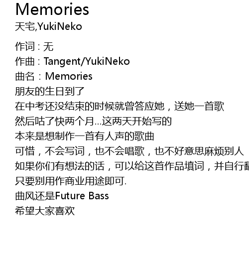 | 如果你们有想法的话,可以给这首作品填词,并自行翻唱 | |