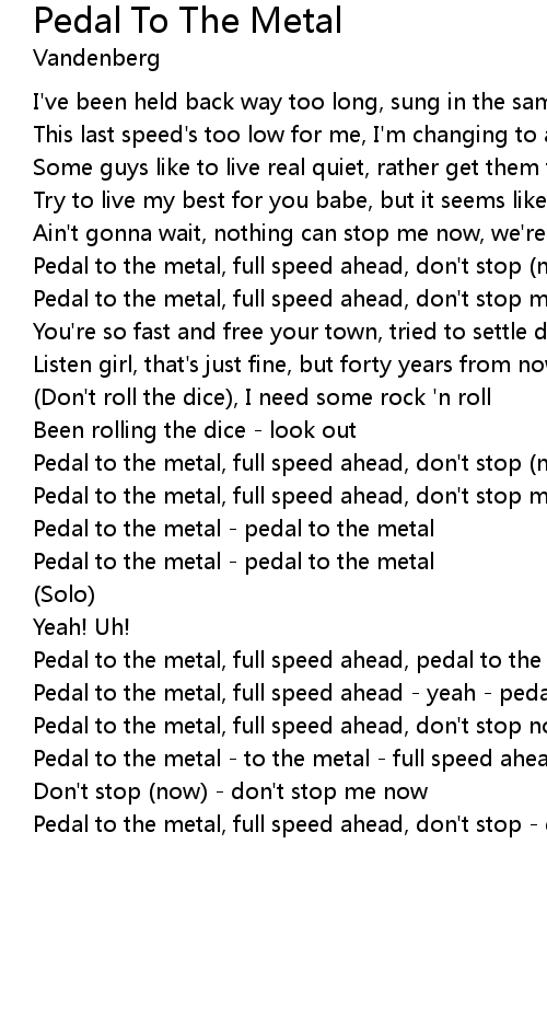 Pedal to the metal, full speed ahead - yeah - pedal to the metal - c'mon |