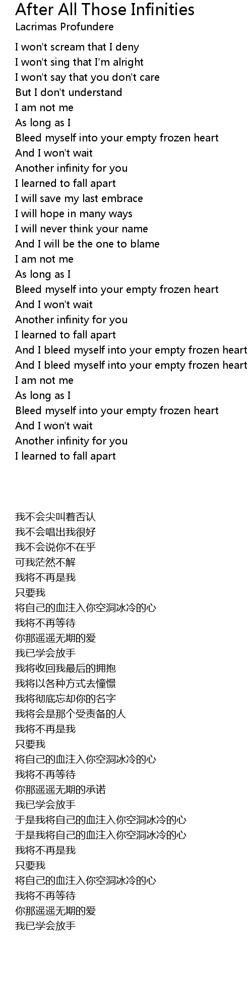 And I bleed myself into your empty frozen heart |
