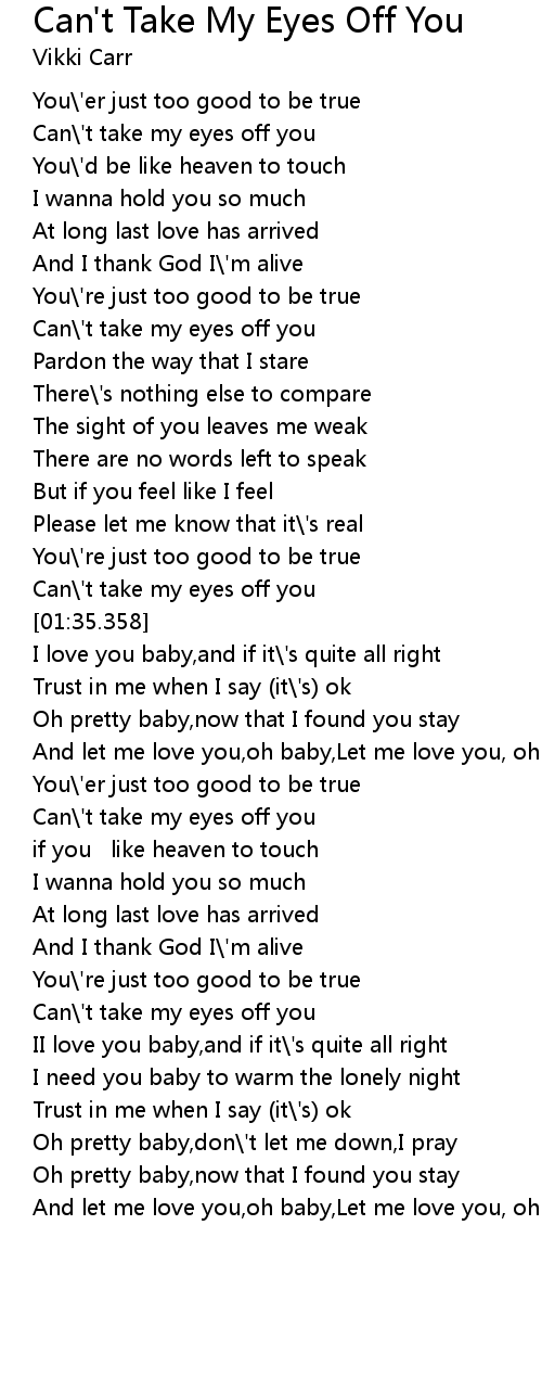 | [01:56.478] | Oh pretty baby, now that I found you stay |