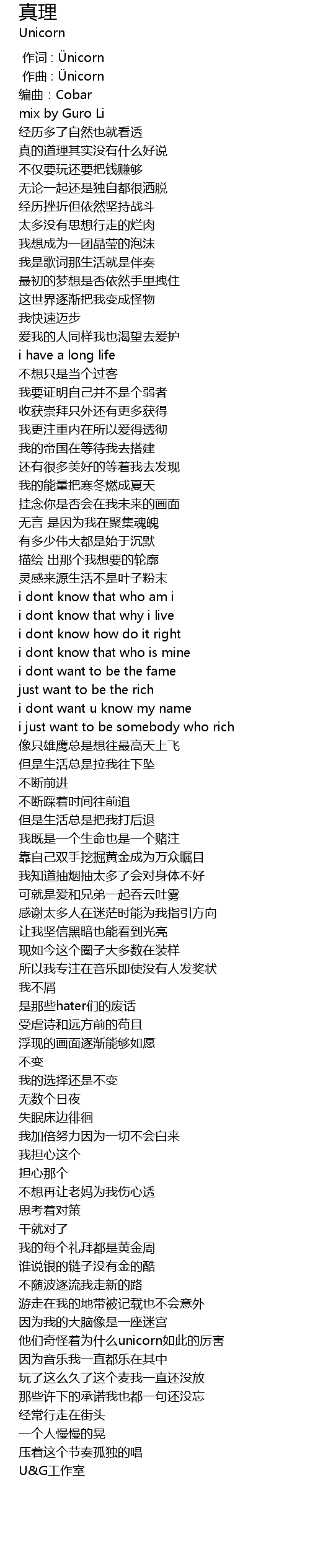| [00:01.000] | zuo qu : Ü nicorn |