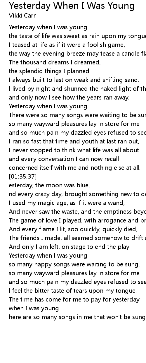 Yesterday when I was young |