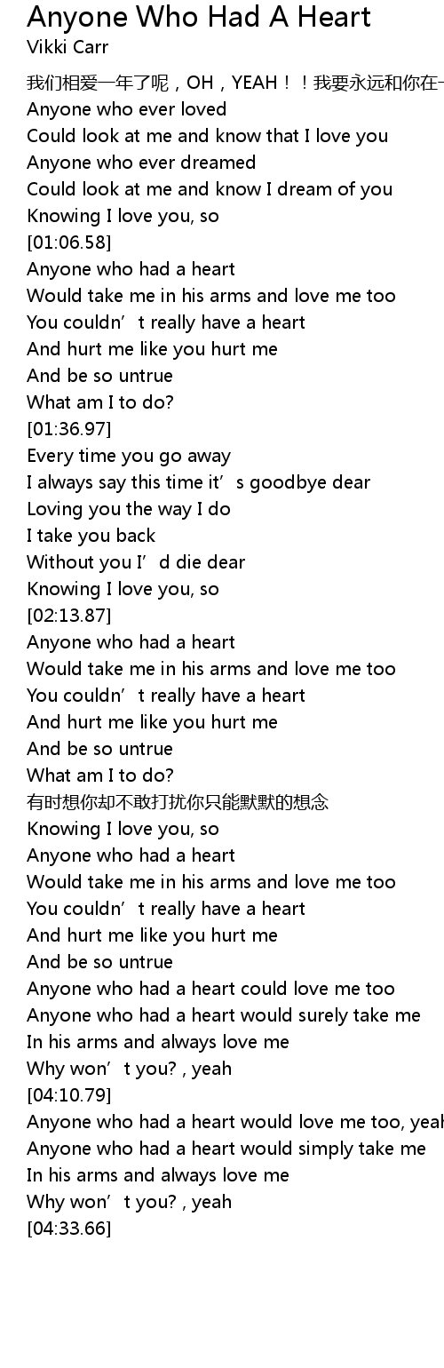 | [04:18.71] | Anyone who had a heart would simply take me |