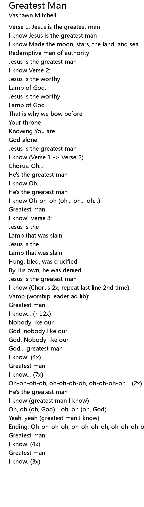 Verse 1: Jesus is the greatest man |
