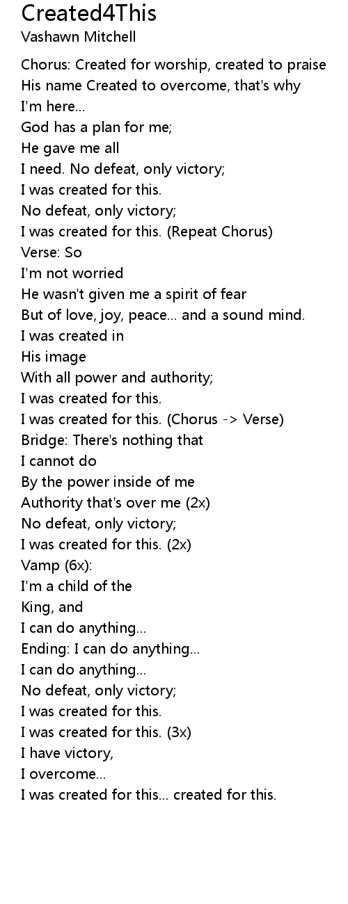 I was created for this. (Repeat Chorus) |