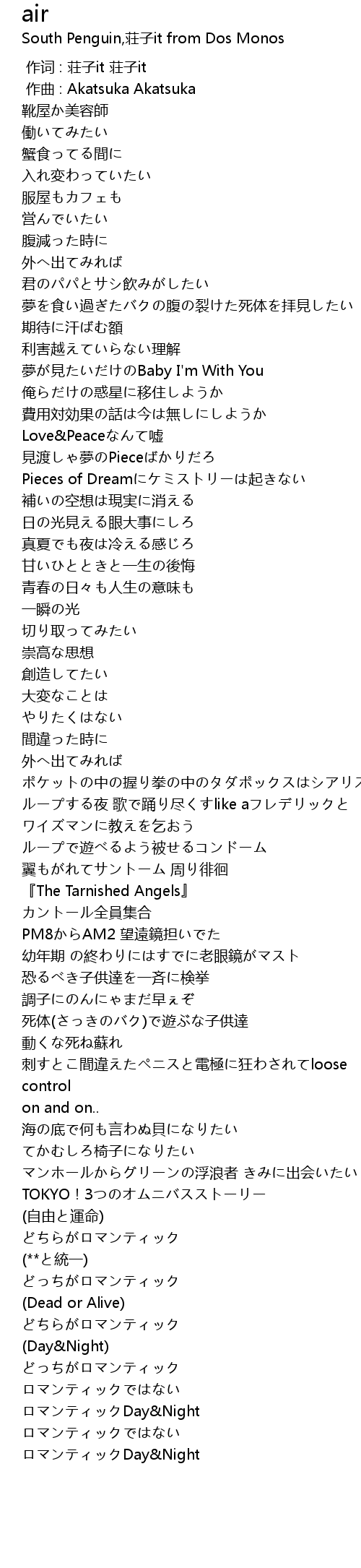 | [03:54.03] | ロマンティックDay&Night |