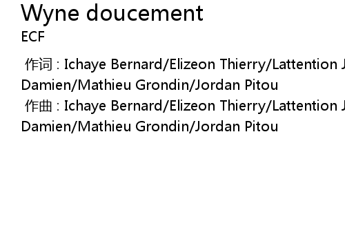 | [00:00.00-1] | zuò cí : Ichaye Bernard Elizeon Thierry Lattention Johan Baptiste Damien Mathieu Grondin Jordan Pitou |