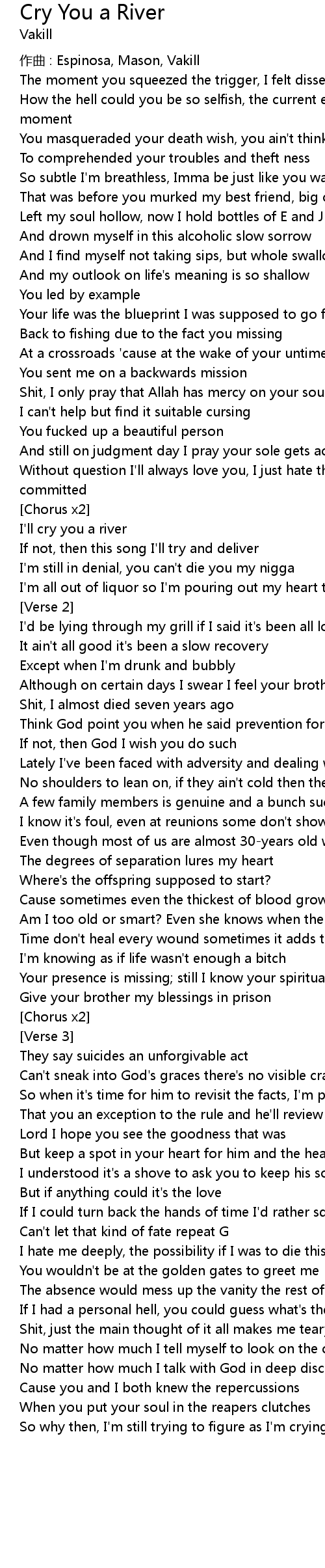 | So why then, I' m still trying to figure as I' m crying this river | |