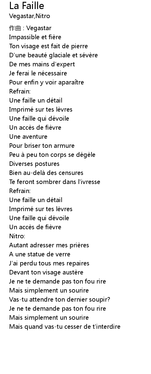 | Te feront sombrer dans l' ivresse | |