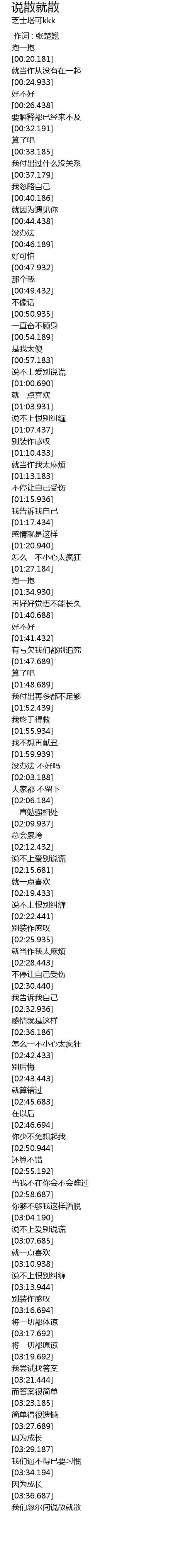 | [03:04.190] | shuo bu shang ai bie shuo huang |