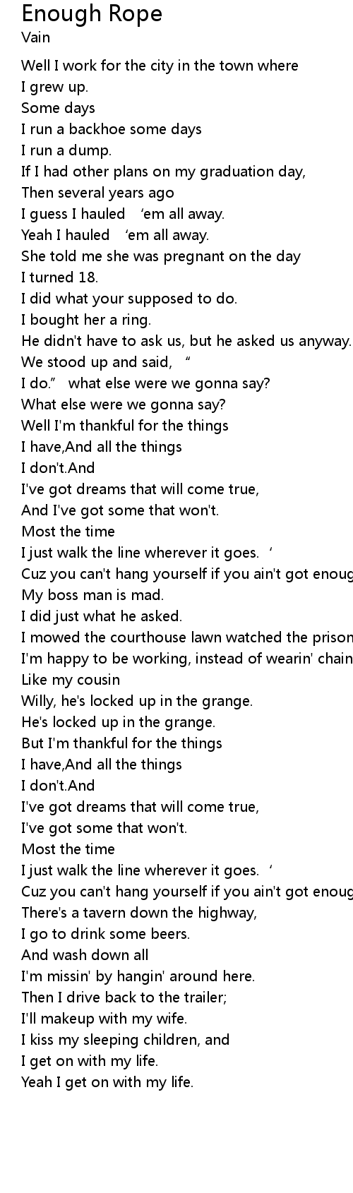 | Cuz you can' t hang yourself if you ain' t got enough rope. | |