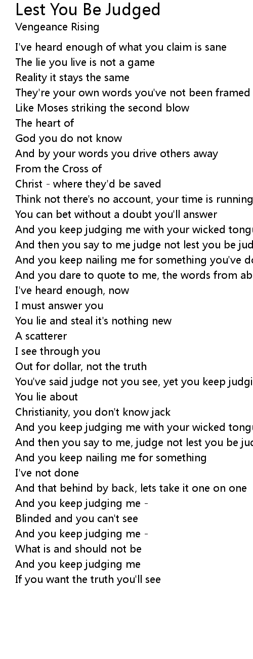 And then you say to me, judge not lest you be judged |