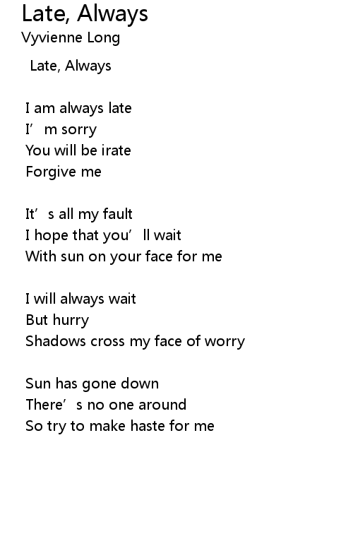 | I am always late | |