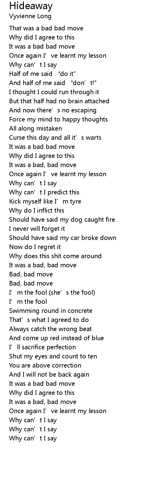 | [00:57.25] | It was a bad bad move |