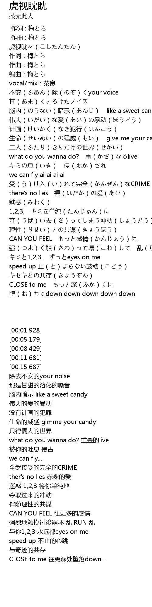 | [00:01.928] | 虎视眈々(こしたんたん) |