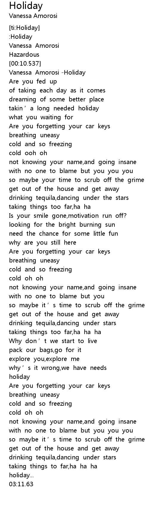 | [00:14.476] | Vanessa Amorosi -Holiday |