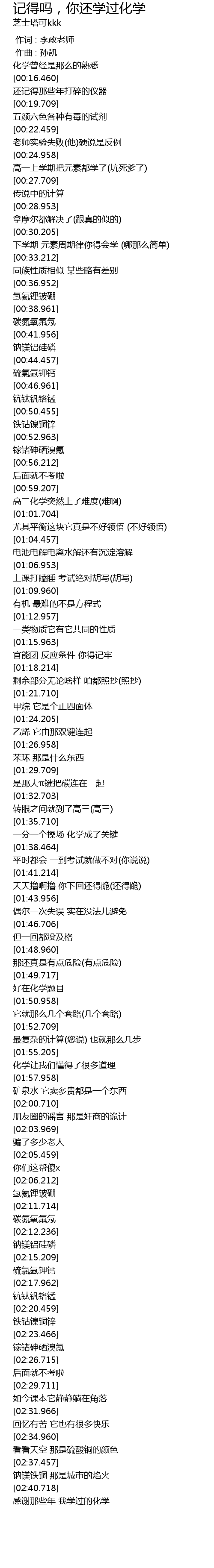| [02:41.462] | gan xie nei xie nian wo xue guo de hua xue |