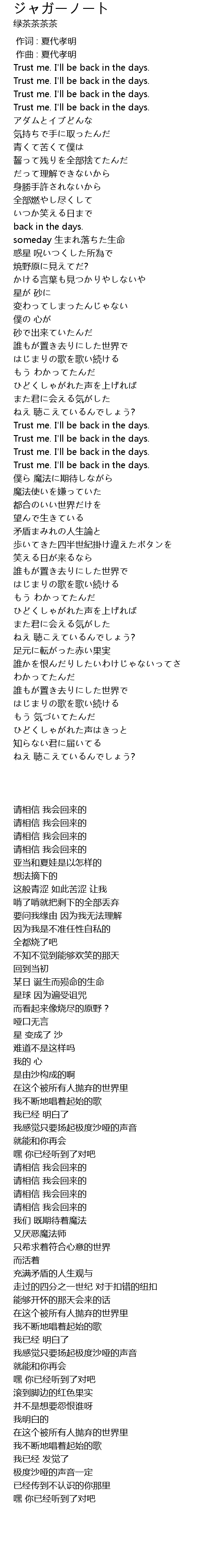 | [00:03.197] | Trust me. I' ll be back in the days. |