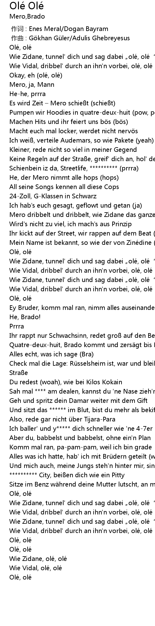 | [01:52.96] | Wie Zidane, tunnel' dich und sag dabei ole, ole" |