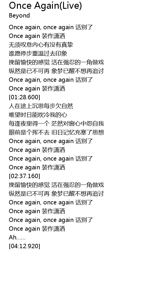 | [02:23.130] | Once again, once again 话别了 |