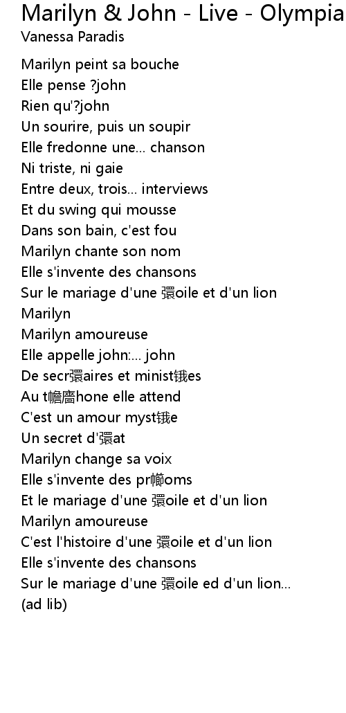 | Song | Marilyn & John - Live - Olympia 1993 |